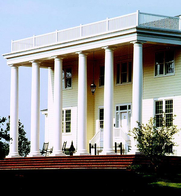 PolyStone® Fiberglass Columns Tuscan Capitals & Bases Plain Tapered FRP Shafts 24" x 24' Colossal Order Photography: Steve Roos Courtesy of Ashcraft Studio Residential, Exterior
