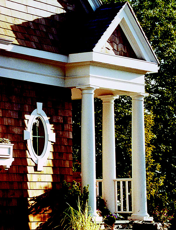 PolyStone® Fiberglass Columns Tuscan Capitals & Bases Plain Tapered FRP Shafts 12" x 9' Front porch and entrance, Residential Exterior Photography: Courtesy of Gilbane Properies