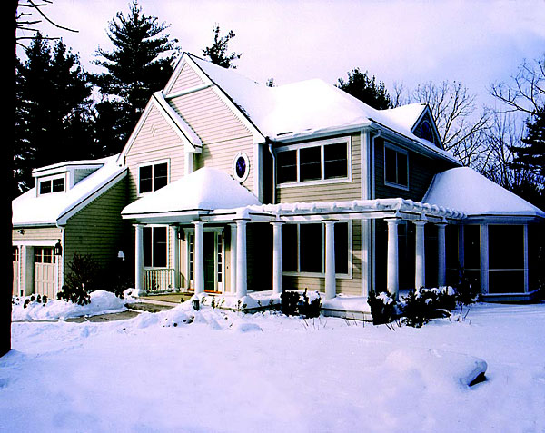 PolyStone® Fiberglass Columns Tuscan Capitals & Bases Plain Tapered FRP Shafts 10"x8' & 12"x10' Country Living Showcase Front entrance with columns on wrap-around porch, Residential, Interior Photography: John Bellenis Photography