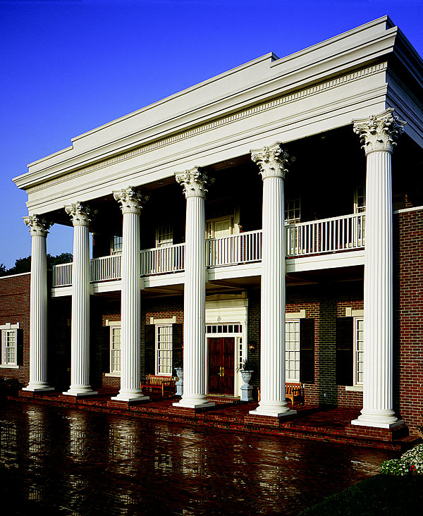 Architectural Columns Roman Corinthian Capitals & Cast Marble Attic Bases Fluted Tapered Wooden Shafts 30" x 26' 9" Colossal Order Front Entrance Photography: Michael Lyon Residential, Exterior
