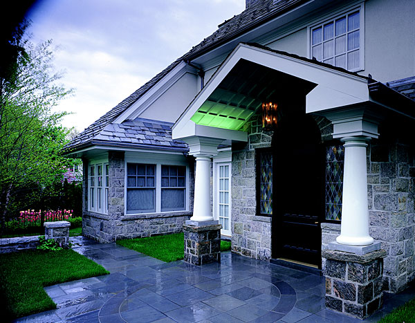 Architectural Columns Cast Marble Tuscan Bases Plain Tapered Wooden Shafts 16" x 5' 6" Stone Pedestals Front Entrance Residential Exterior Photography: Phillip Ennis