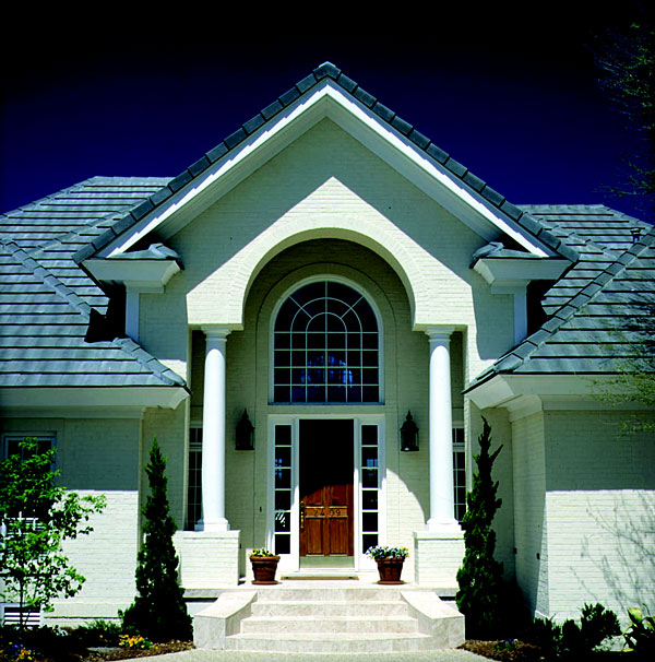 PolyStone® Fiberglass Columns Tuscan Capitals & Bases Plain Tapered FRP Shafts 14" x 10' Front entrance Photography: Hart/Collier Photography