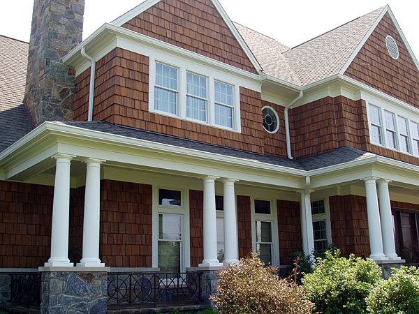 PolyStone® Fiberglass Columns Paired columns on porch. Residential, Exterior, Showhouses Photography: Barbara Heddinger