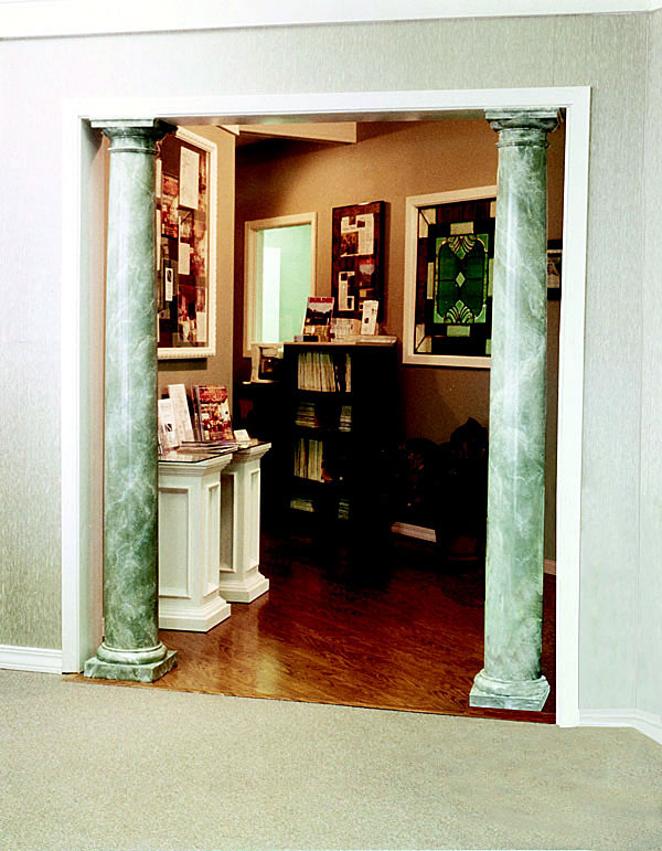 PolyStone® Fiberglass Columns Tuscan Capitals & Bases Plain Tapered FRP Shafts Faux Marble 10" x 8' University of Northern Iowa Room Dividers in Waiting Room Commercial, Interior, Government