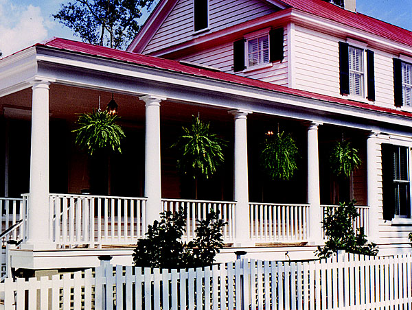 PolyStone® Fiberglass Columns Tuscan Capitals & Bases Plain Tapered FRP Shafts 12" x 9' Showhouse Featured on Bob Vila Porch with Columns and Balusters Photography:Grimball Photographics Residential, Exterior, Showhouses, Television Shows, Bob Vila