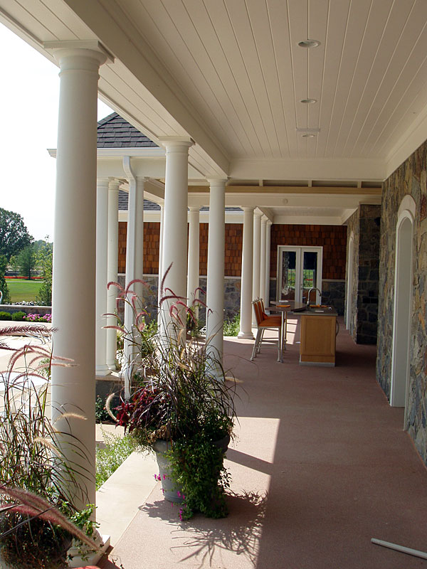 PolyStone® Fiberglass Columns Covered walkway lined with columns. Commercial, Exterior, Showhouses Photography: Barbara Heddinger