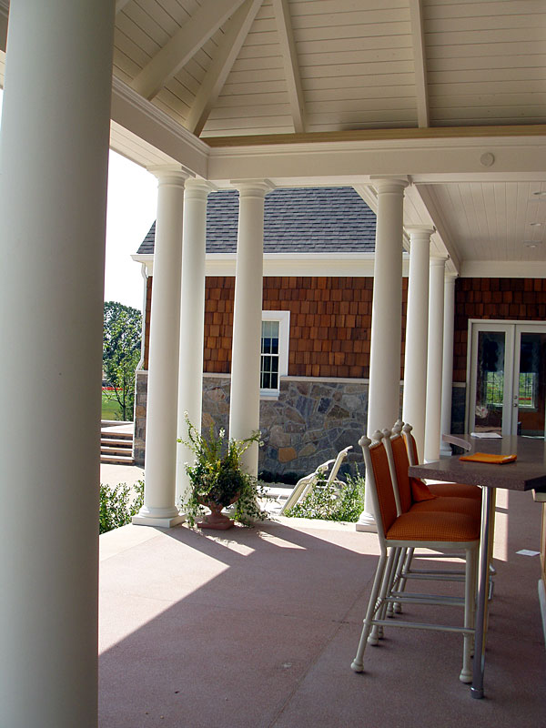 PolyStone® Fiberglass Columns Covered walkway lined with columns. Residential, Exterior, Showhouses Outdoor eating area lined with columns. Photography: Barbara Heddinger