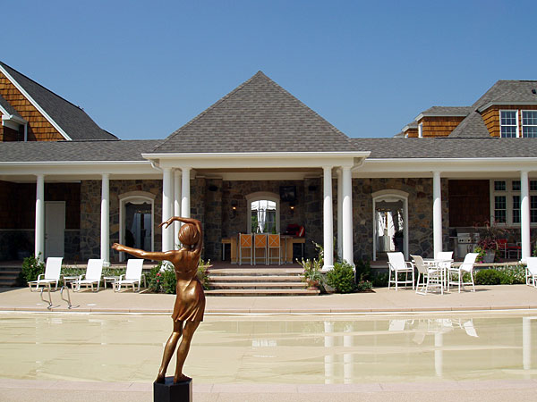 PolyStone® Fiberglass Columns Patio overlooking the swimming pool. Commercial, Exterior, Showhouses Photography: Barbara Heddinger