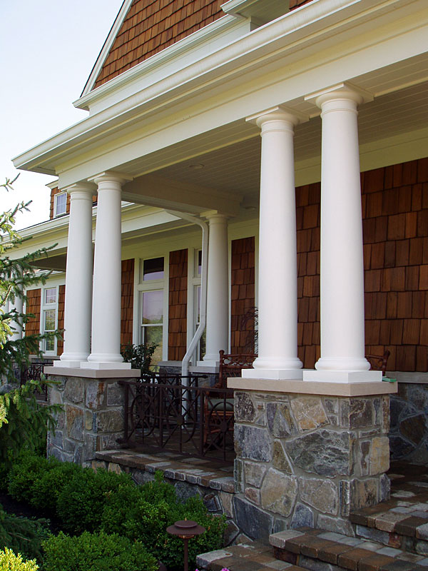 PolyStone® Fiberglass Columns Paired columns on porch. Residential, Exterior, Showhouses, porch Photography: Barbara Heddinger