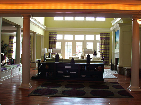PolyStone® Fiberglass Columns Tuscan Capitals & Bases Plain Tapered Round FRP Shafts 12" x 8', 9' & 10' Indianapolis Showhouse Residential, Interior, Showhouses Columns in living room. Photography: Barbara Heddinger
