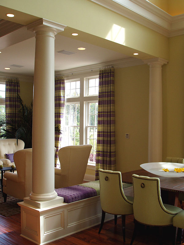 PolyStone® Fiberglass Columns Tuscan Capitals & Bases Plain Tapered Round FRP Shafts 12" x 8', 9' & 10' Indianapolis Showhouse Residential, Interior, Showhouses Columns on pedestals. Photography: Barbara Heddinger