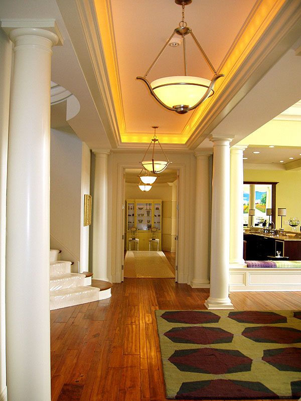 PolyStone® Fiberglass Columns Tuscan Capitals & Bases Plain Tapered Round FRP Shafts 12" x 8', 9' & 10' Indianapolis Showhouse Residential, Interior, Showhouses Columns in foyer.. Photography: Barbara Heddinger