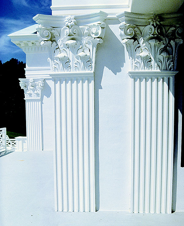 Architectural Pilasters Roman Corinthian Capitals Fluted Wooden Pilasters 24" x 19' 8" Pilasters framing corners on upper porch. R3esidential Exterior Frederick Hart Photography: Jody Hedrick