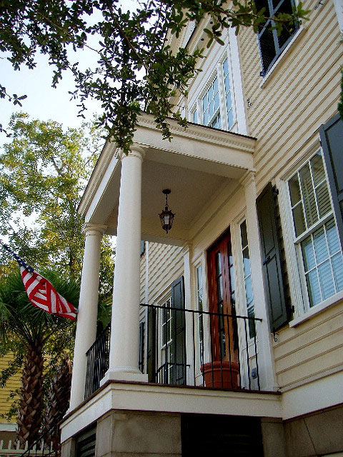 PolyStone® Fiberglass Architectural Columns Tuscan Capitals & Bases Plain Tapered FRP Shafts Superpositioned or Stacked Columns & Front Entrances, Residential, Exterior, I'ON Photography:Barbara Heddinger