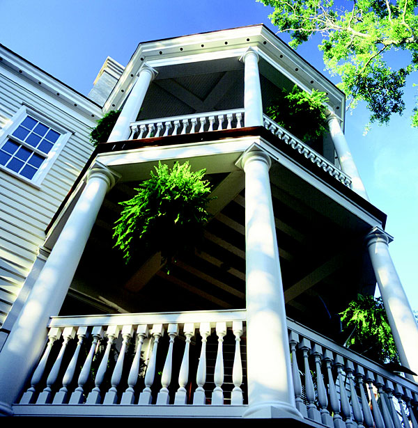 PolyStone® Fiberglass Columns Tuscan Capitals & Bases Plain Tapered FRP Shafts 12" x 10' Residential, Exterior, I,ON,Superpositioned or Stacked Columns Photography: Hart/Collier Photography