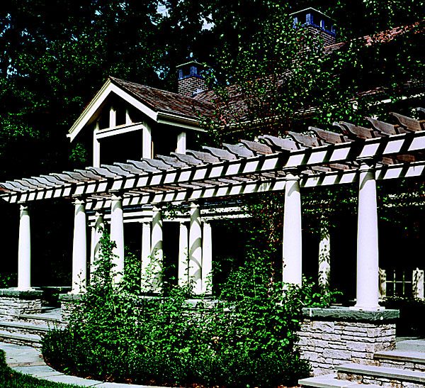 Architectural Classic Columns Tuscan Capitals & Bases Plain Tapered Wooden Shafts 12" x 8' Pergola Photography: Jeffrey Yardis Residential, Exterior, Outdoor Structures