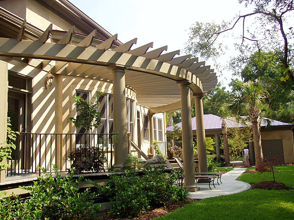 PolyStone® Fiberglass Columns on Pergola Tuscan Capitals & Bases Plain Tapered FRP Shafts Residential, Exterior, Outdoor structures