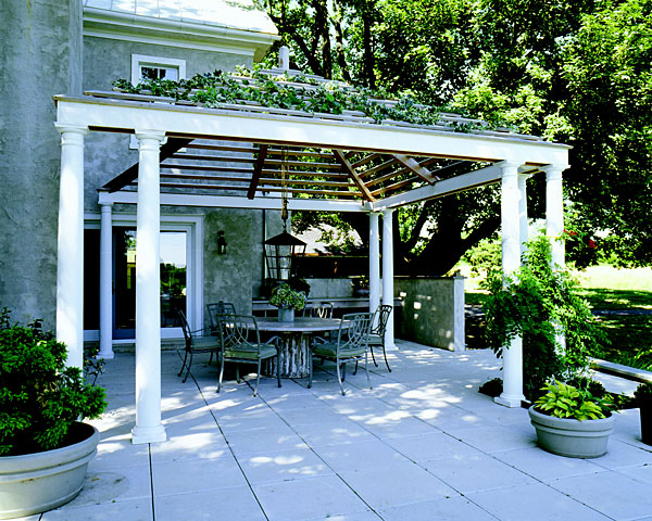 PolyStone® Fiberglass Columns Tuscan Capitals & Bases Plain Tapered FRP Shafts 12" x 8' Pergola, Residential, Exterior, Residential Outdoor Structures Photography: William Steele