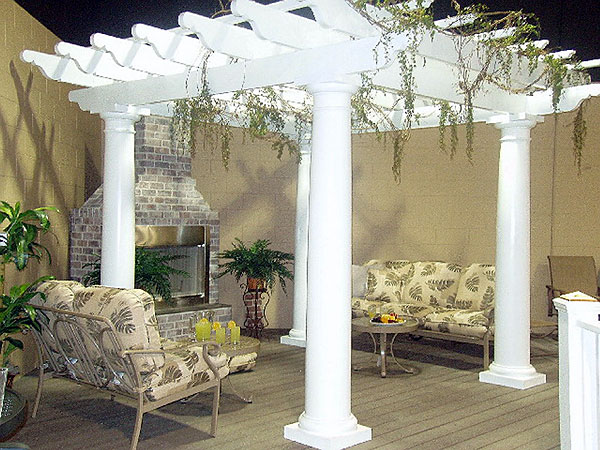 PolyStone® Fiberglass Columns American Home Place Show Pergola, Pergolas, Arbor, Pergola Photography: Barbara Heddinger