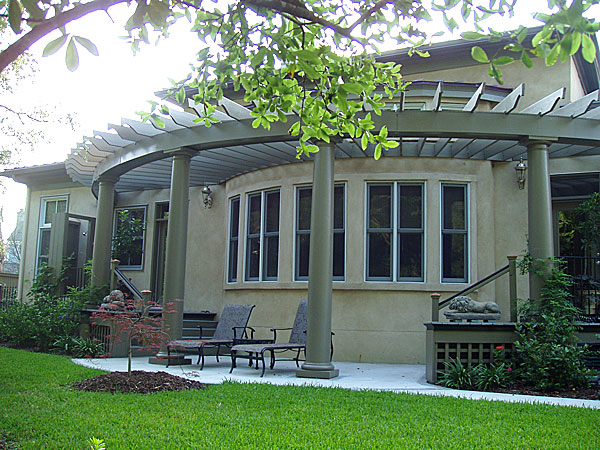 PolyStone® Fiberglass Architectural Columns on Pergola Tuscan Capitals & Bases Plain Tapered FRP Shafts Residential, Exterior, Outdoor structures, Pergola, Pergolas