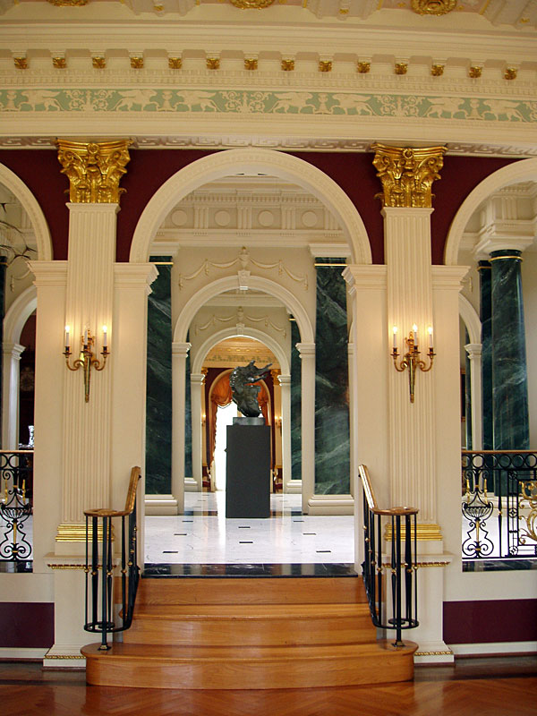 Authentic Replication Roman Corinthian Fluted Pilasters Gold Capitals Frame Arches Hall Photography: Barbara Heddinger