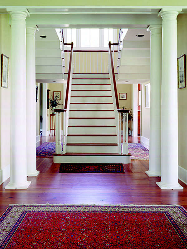Architectural Stock Columns Plain Tapered Wooden Shafts 10" x 8' Stock columns with stairs. Photography: Gordon Beall Residential, Interior, Foyer