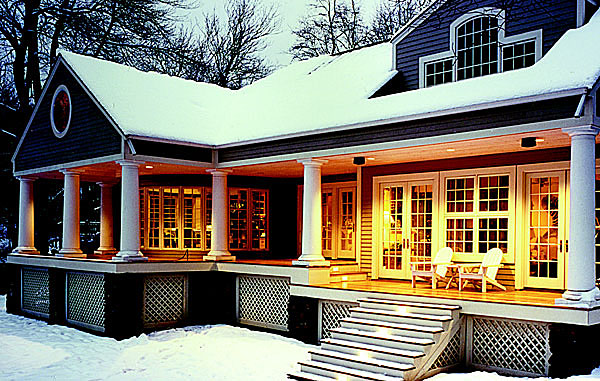 Architectural Stock Columns Plain Tapered Wooden Shafts 12" x 7' Back porch showing snow. Photography: Phillip Ennis Residential, Exterior
