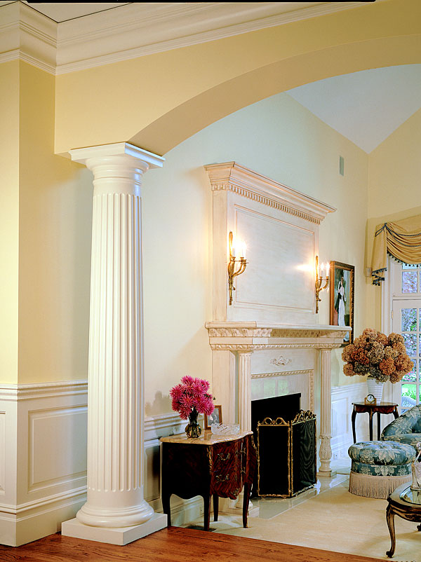 Architectural Classic Stock Column Tuscan Capital & Base Fluted Tapered Wood Shaft 14" x 8' Photography: Carolyn Bates Room divider living room Residential, Interior