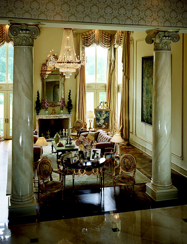 Architectural Columns Empire w/Necking Capitals & Attic Bases Plain Tapered Wooden Shafts 12" x 8' Faux Finish Columns Used as Room Dividers Living Room, Residential, Interior Photography: Glen C. Moon