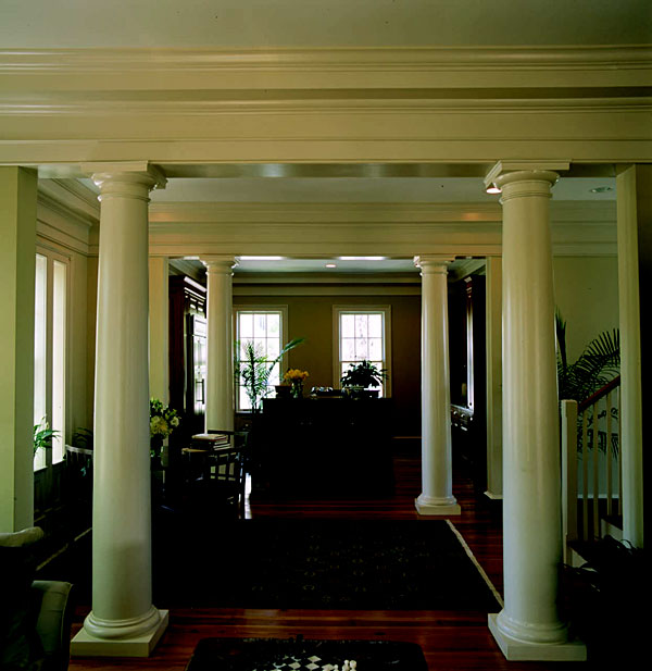 PolyStone® Fiberglass Columns Tuscan Capitals & Bases Plain Tapered FRP Shafts 10" x 10' Residential, Interior, Room Dividers, I'On Group Photography: Hart/Collier Photography