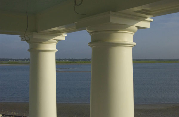 PolyStone® Architectural Columns Tuscan Capitals & Bases Plain Tapered Shafts Chadsworth Cottage Period Homes Magazine Photography:Hart/Collier Figure Eight Island Residential, Exterior