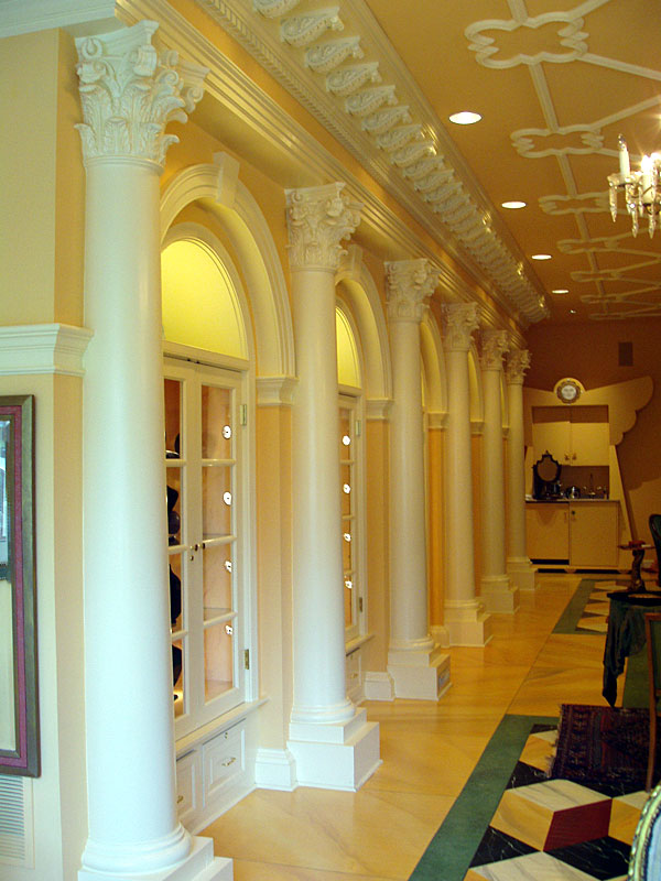 Authentic Replication Columns Roman Corinthian Capitals & Attic Bases Plain Round Tapered Shafts Tuscan Pilasters Commercial, Interior, Retail Photography: Barbara Heddinger