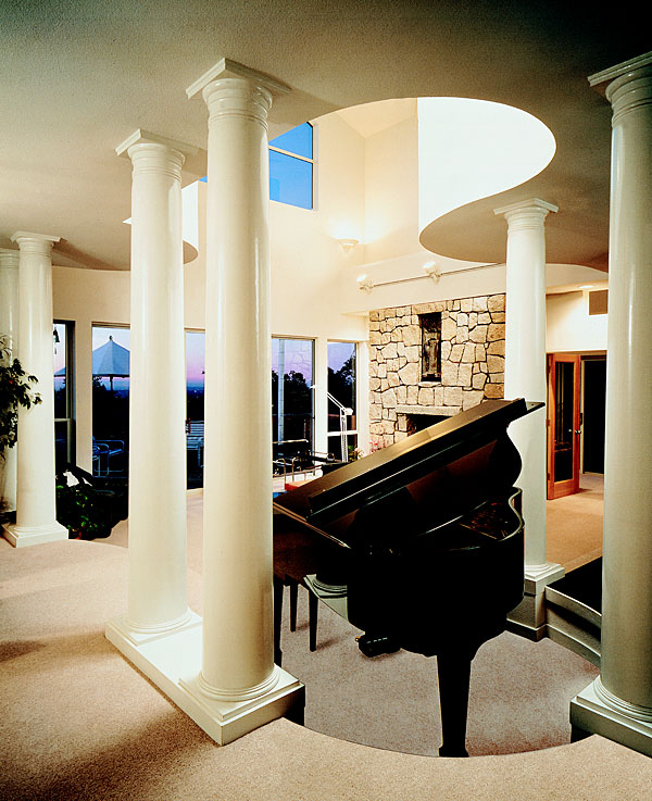 Architectural Stock Columns Plain Tapered Wooden Shafts 12" x 8' Paired columns along raised surve surrounding the piano. Living room Family room Photography: Stan Kaslow Residential, Interior
