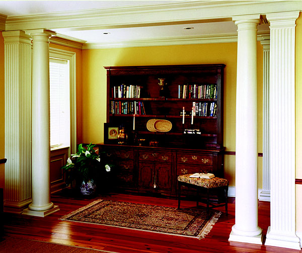 Architectural Columns Tuscan Capitals & Bases Plain Tapered Shafts & Fluted Non-tapered Engaged Shafts 10" x 8' Dining room Pilasters Photography: Tripp Smith Residential, Interior