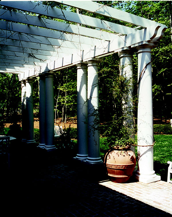 PolyStone® Fiberglass Columns for Pergola Roman Doric Capitals & Attic Bases William Poole Design Classic American Home Magazine's 25th Anniversary Home, Residential, Exterior, Residential Outdoor Structures Photography: Hart/Collier Photography