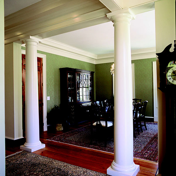 PolyStone® Fiberglass Columns Tuscan Capitals & Bases Plain Tapered FRP Shafts 10" x 10' Residential, Interior, Columns Used as Room Dividers to Separate the Dining Room, I'On Group Photography: Hart/Collier Photography
