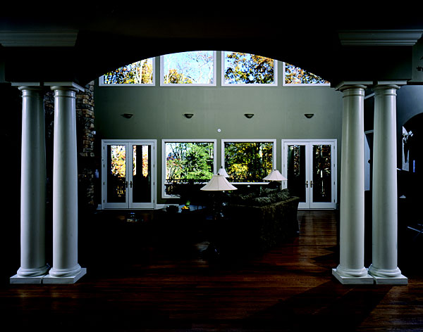PolyStone® Fiberglass Columns Tuscan Capitals & Bases Plain Tapered FRP Shafts Residential, Interior, Paired columns Photography: Michael McKelvey