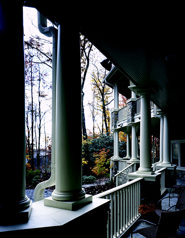 PolyStone® Fiberglass Columns Tuscan Capitals & Bases Plain Tapered FRP Shafts 12" x 4' 6" Pedestals Residential, Exterior, Superpositioned or Stacked Columns Photography: Michael McKelvey