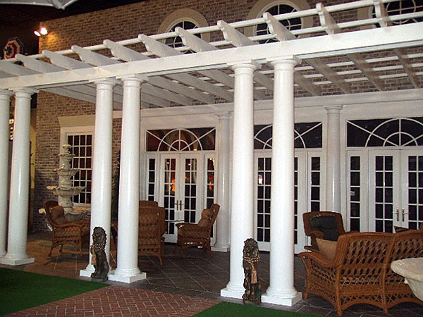 Architectural Columns Tuscan Capitals & Bases Plain Tapered Wood Shafts Commercial, Exterior, Pergolas, Outdoor structures, Pergola Atlantis Ocean Club Paradise Island, Nassau, Bahamas