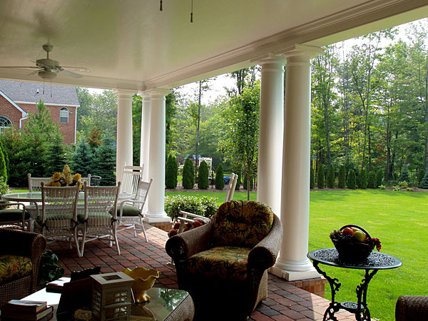 PolyStone® Fiberglass Tuscan Plain Tapered FRP Columns Residential, Exterior, Entrances Porch with paired columns
