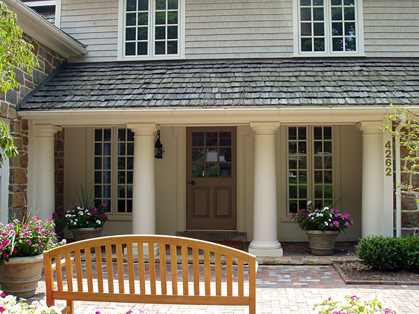 PolyStone® Fiberglass Columns Tuscan Capitals & Bases Plain Tapered Round FRP Residential, Exterior, Porch, Entrances Columns lining front porch Canfield, Ohio (OH) Photography:Barbara Heddinger