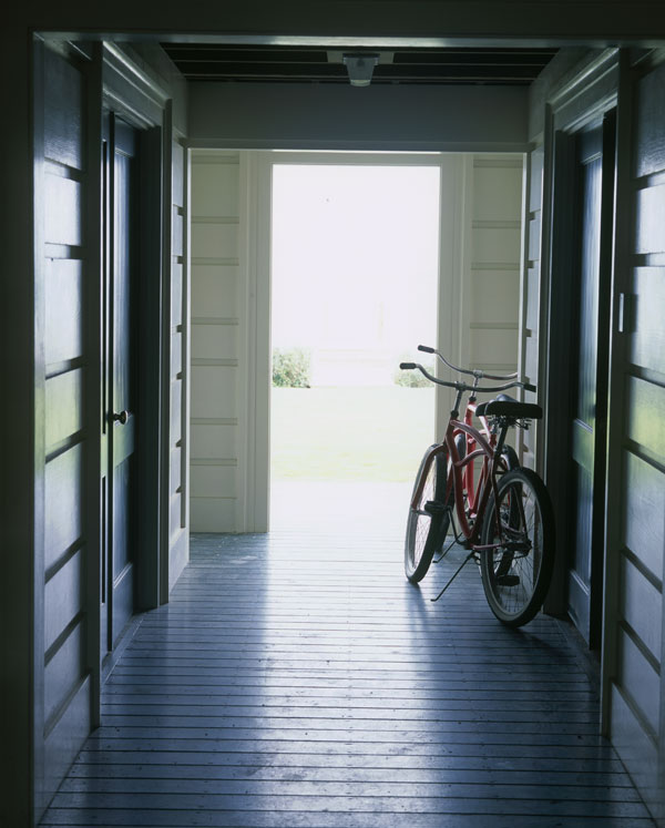 Lower level entry looking out toward the ocean. Chadsworth Cottage New Old House Magazine Figure Eight Island, North Carolina (NC)