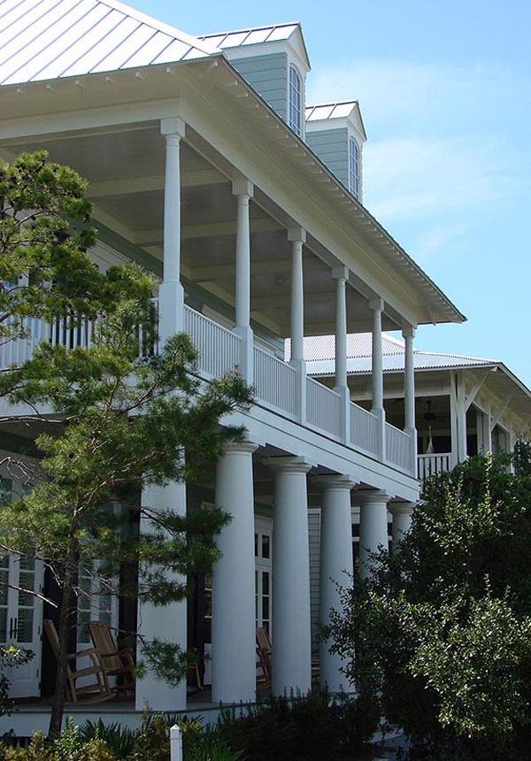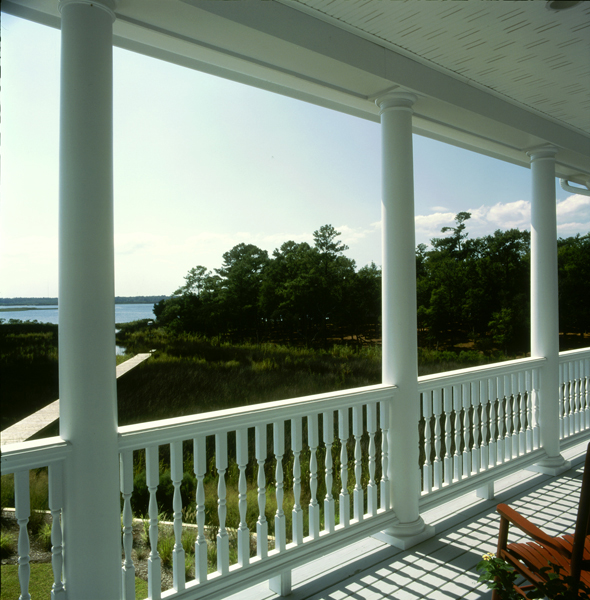 Architectural Pilasters Tuscan Non-tapered Plain Wood Shafts Chadsworth Cottage New Old House Magazine Figure Eight Island, North Carolina (NC)
