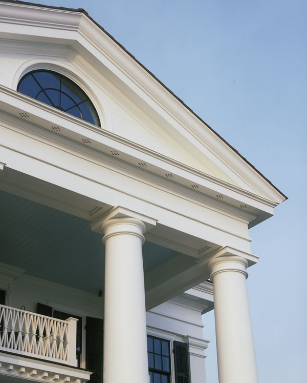 PolyStoneŽ Architectural Columns Tuscan Capitals & Bases Plain Tapered Shafts 32" x 19' Colossal Order Chadsworth Cottage New Old House Magazine Figure Eight Island, North Carolina (NC)