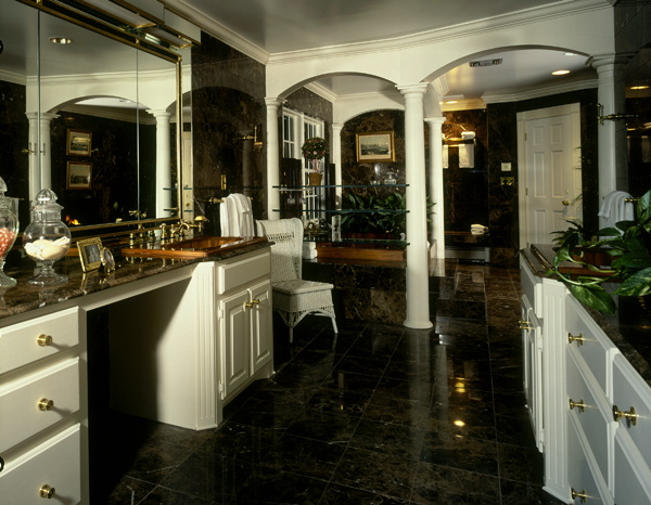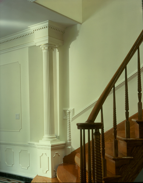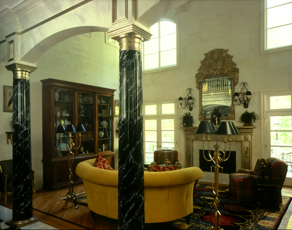 Architectural Stock Columns Tuscan Capitals & Bases Fluted Tapered Round Wood Shafts Faux Finish with Gold Trim 10" x 8' Atlanta Magazine Atlanta, Georgia (GA)