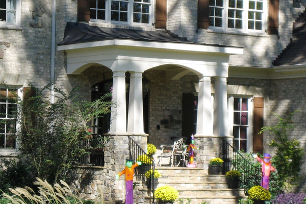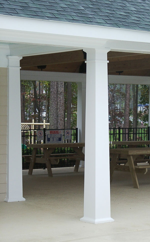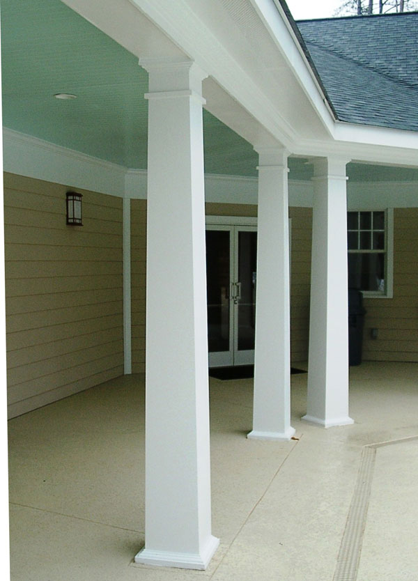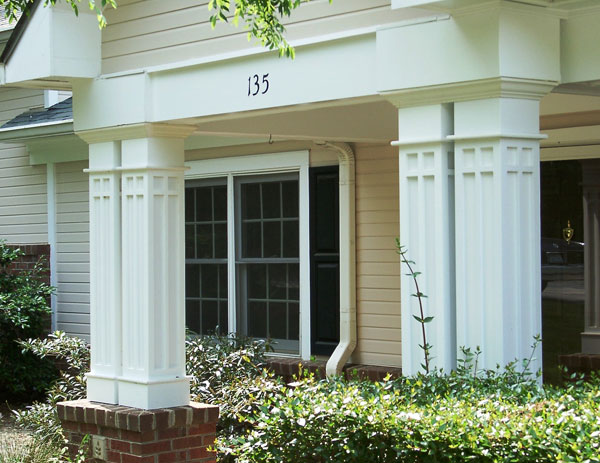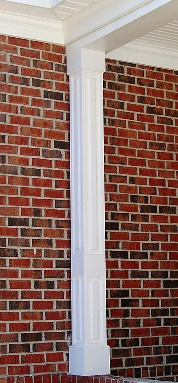 Split-Recessed Panel Box Columns on Brick Piers PVC Non-tapered Shafts, Capitals & Bases