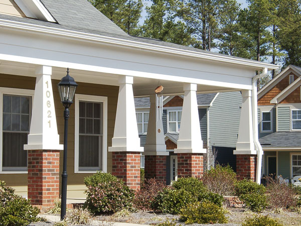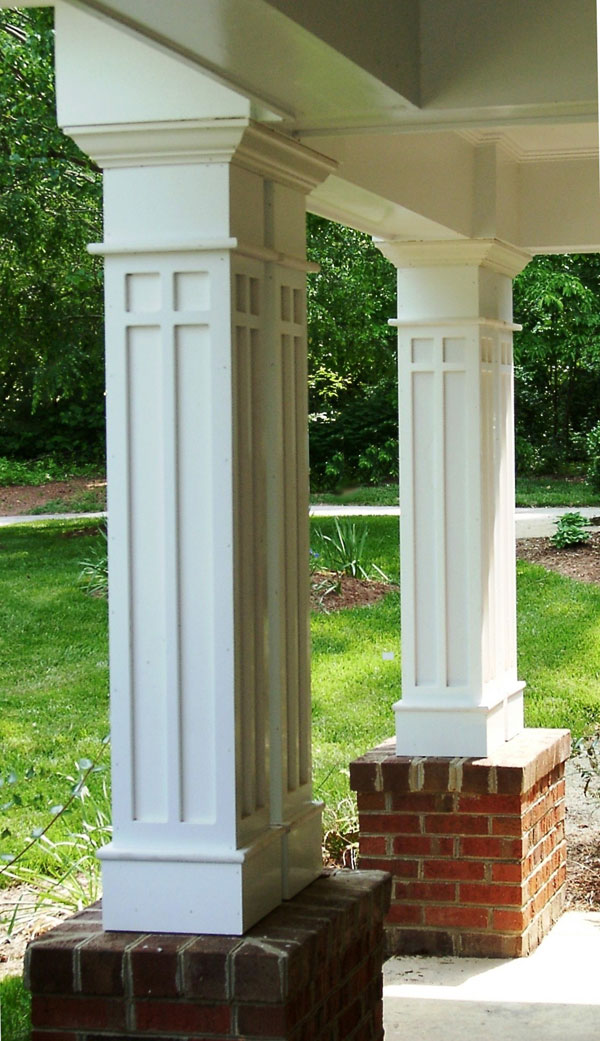 Bungalow Columns on Brick Piers PVC Tapered Plain Shafts, Capitals & Bases