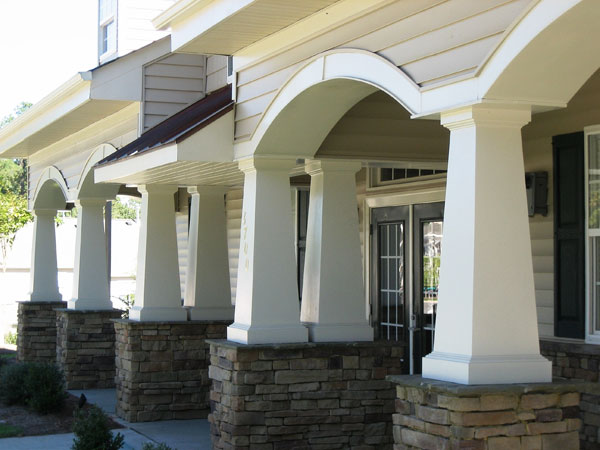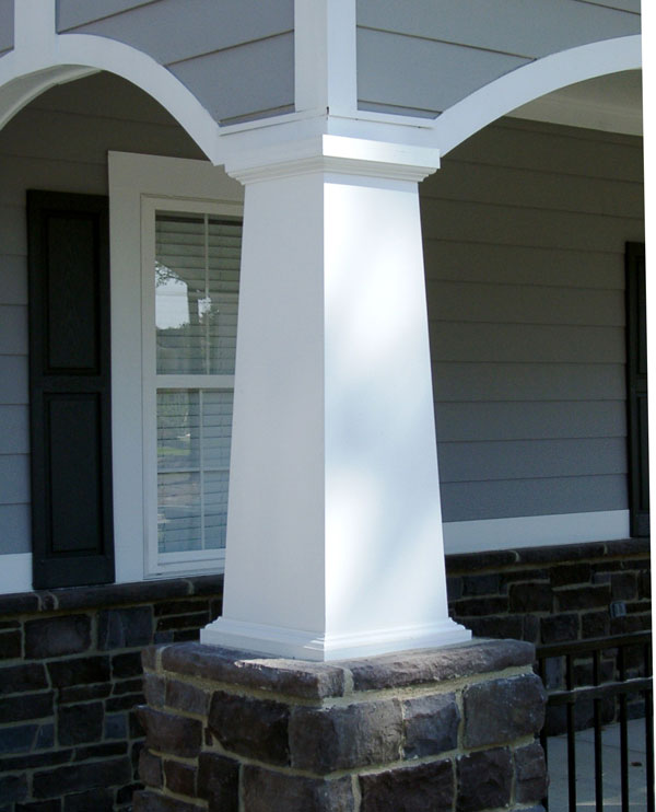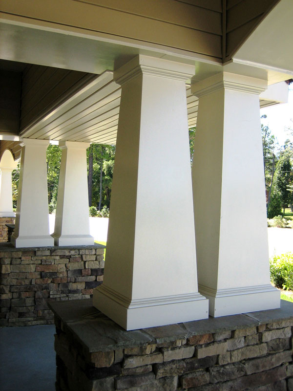 Bungalow Columns on Stone Piers PVC Tapered Plain Shafts, Capitals & Bases