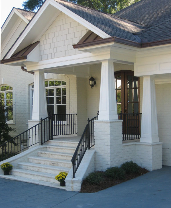 Recessed Panel Bungalow Columns on Brick Piers PVC Tapered Shafts, Capitals & Bases PVC Railings & Spindles