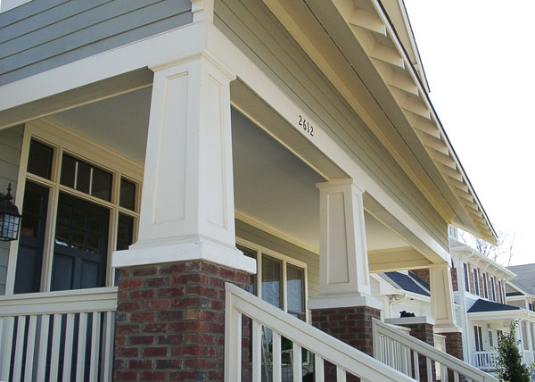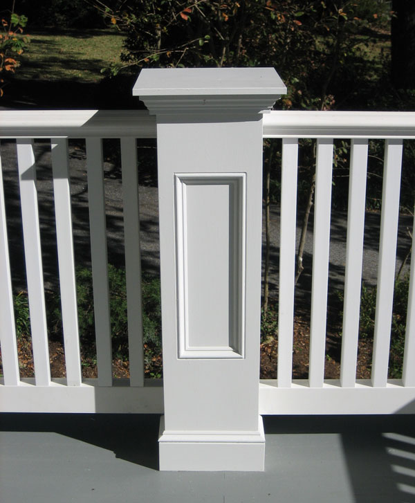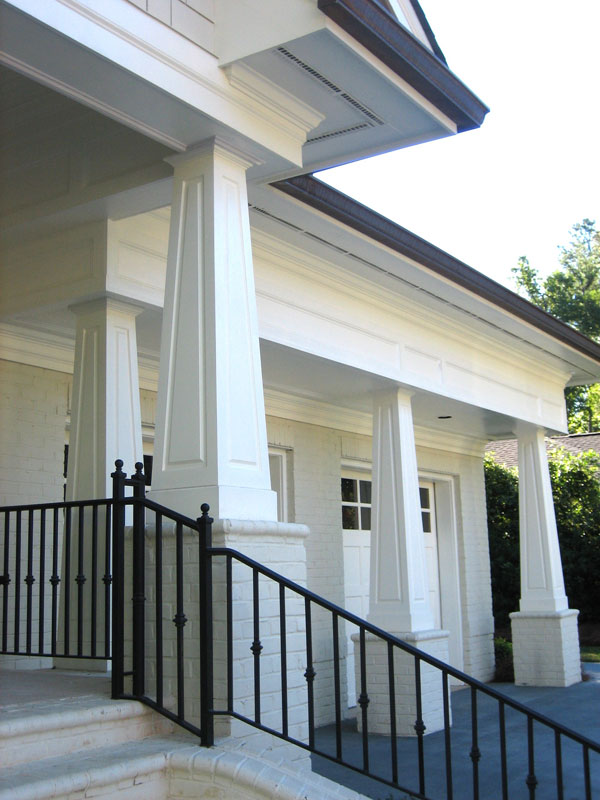 Raised-Panel Bungalow Columns on Brick Piers PVC Tapered Raised Panel Shafts, Capitals & Bases PVC Railings & Spindles
